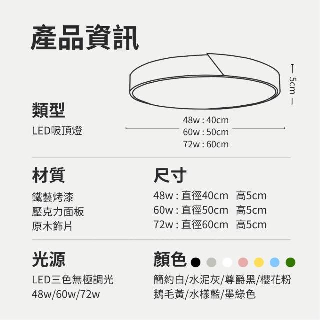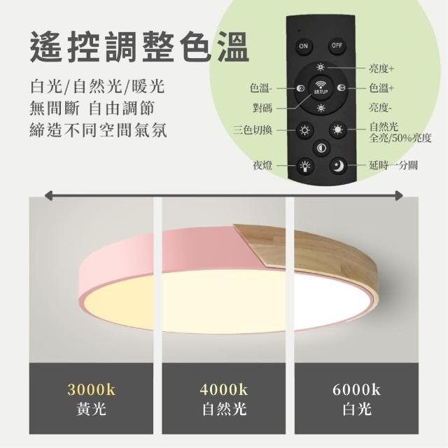 原木LED馬卡龍吸頂燈60W無極調光|遙控器|木紋實木|LED晶片|北歐日式風|客廳燈|房間燈