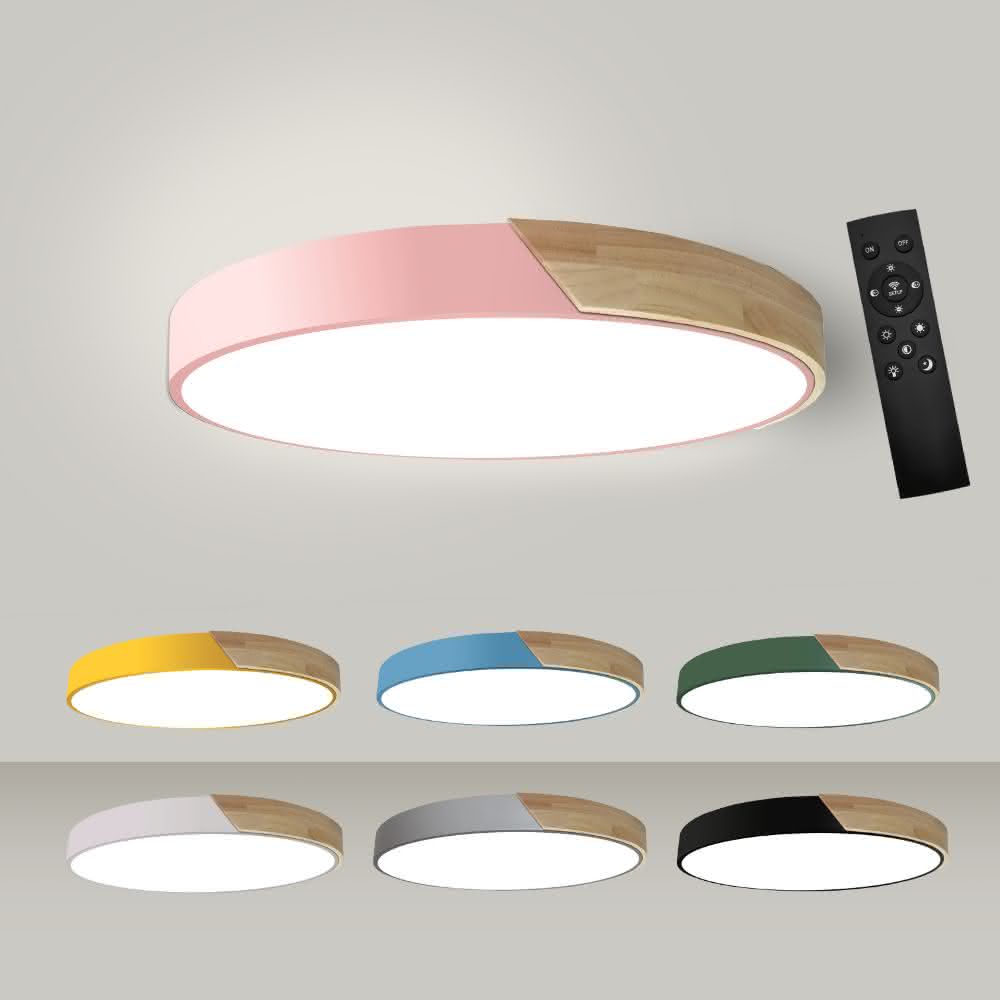 原木LED馬卡龍吸頂燈60W無極調光|遙控器|木紋實木|LED晶片|北歐日式風|客廳燈|房間燈
