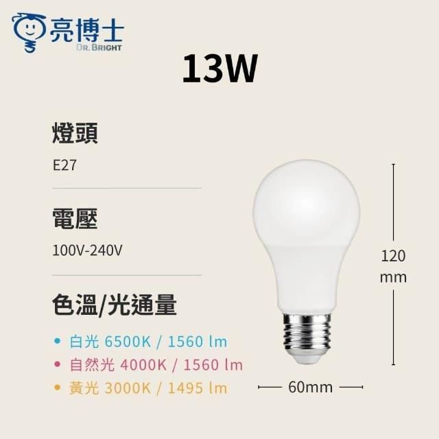 亮博士13W LED大象穩壓燈泡E27|抗閃爍|無藍光|護眼睛|長壽命LED燈泡|CNS認證