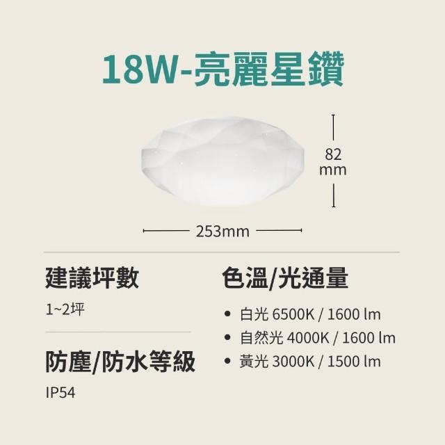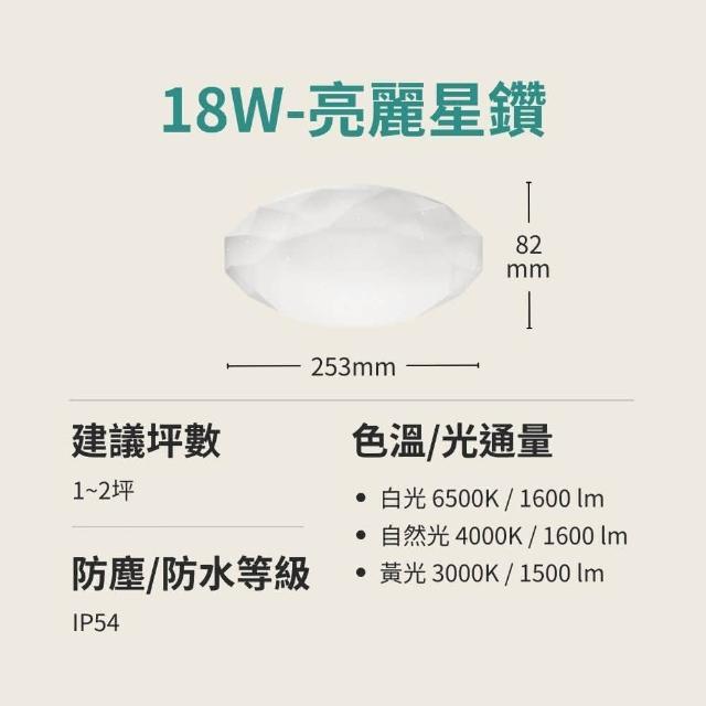 亮博士18W LED 亮麗星鑽吸頂燈1-2坪|LED吸頂燈|1入|IP54防水防塵|CNS認證|浴室陽台可用