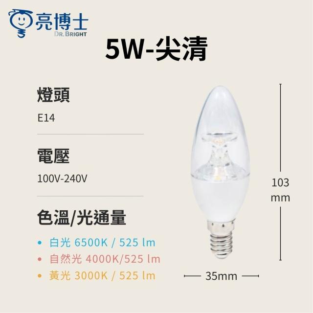 亮博士LED E14 水晶燈 5W |尖清 拉尾 |蠟燭燈泡|LED燈泡|仿鎢絲拉尾燈泡|水晶燈燈泡