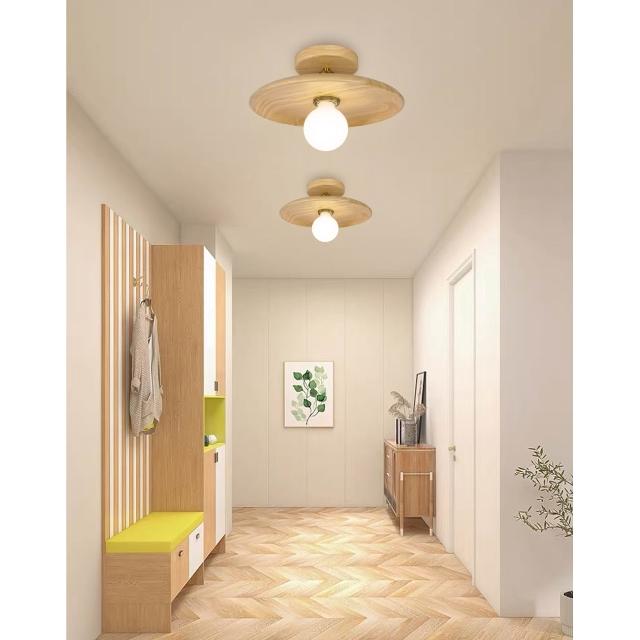 日式原木圓盤吸頂燈|實木木紋|飛碟斗笠燈|單吸頂燈|日式侘寂風|走道燈|走廊燈|玄關燈