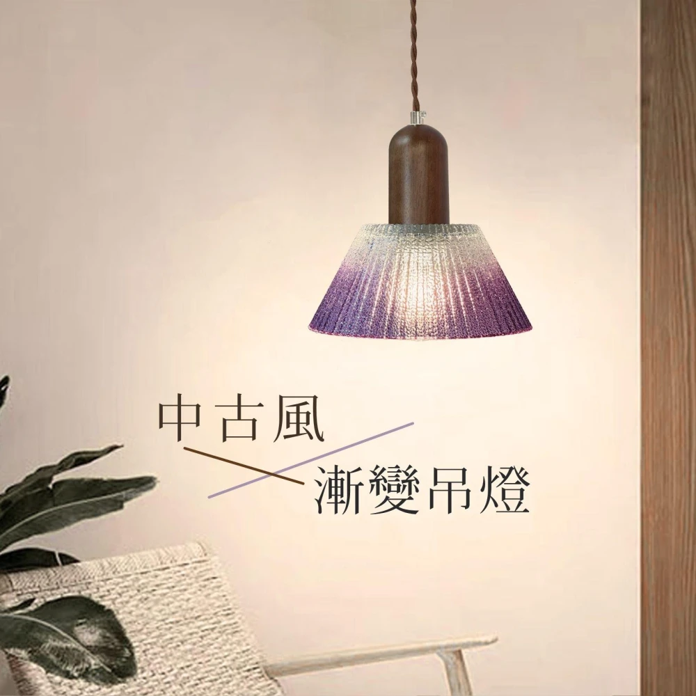 中古風漸變吊燈|復古風吊燈|懷舊|日式中式|胡桃色實木|玻璃吊燈|網美吊燈|床頭吊燈