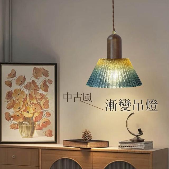 中古風漸變吊燈|復古風吊燈|懷舊|日式中式|胡桃色實木|玻璃吊燈|網美吊燈|床頭吊燈
