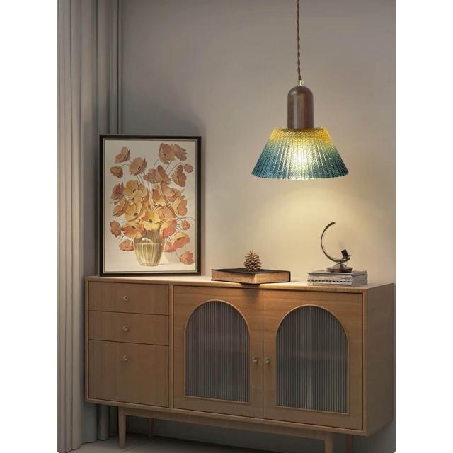 中古風漸變吊燈|復古風吊燈|懷舊|日式中式|胡桃色實木|玻璃吊燈|網美吊燈|床頭吊燈