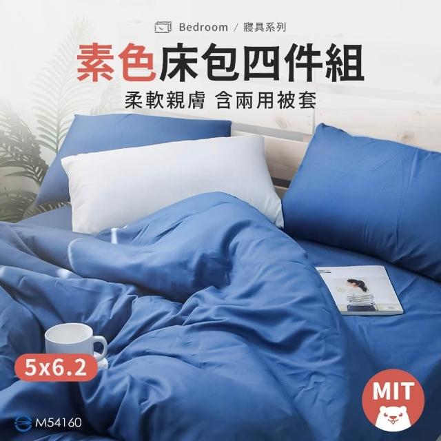 台灣製造 雲絲棉 素色床包被套組 雙人床包兩用被組 5*6.2 四件組(床包+枕套+鋪棉被套) 現貨