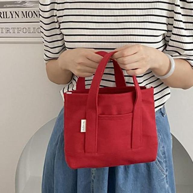 紅色神奇星球素色 餐袋小提包 手提包 迷你小包包 便當袋 可愛包包 小提包 帆布包 包包 文青 隨身包包 提包