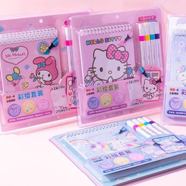 Sanrio三麗鷗 庫洛米 Kitty 小畫冊 隨身畫本 大耳狗 美樂蒂 彩色筆 彩色筆套組 禮物組 文具組 著