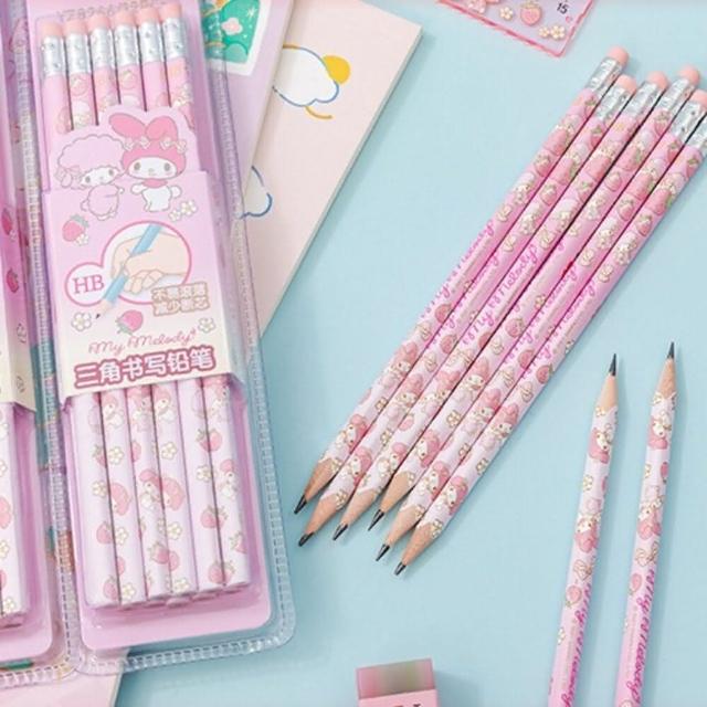 Sanrio三麗鷗 美樂蒂 HB鉛筆 2B鉛筆 盒裝 鉛筆 鉛筆 台灣現貨 鉛筆 HB 筆桿 圓形筆桿 草莓(美樂蒂)