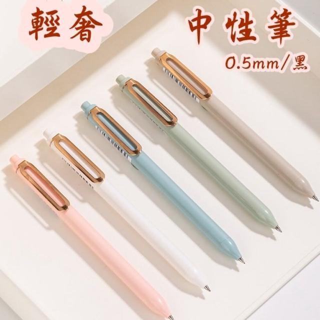 deli 得力5入 輕奢 筆 原子筆 金邊 中性筆 手帳筆 文具 黑筆 藍筆 色筆 辦公用品 按壓原子筆 0.5m