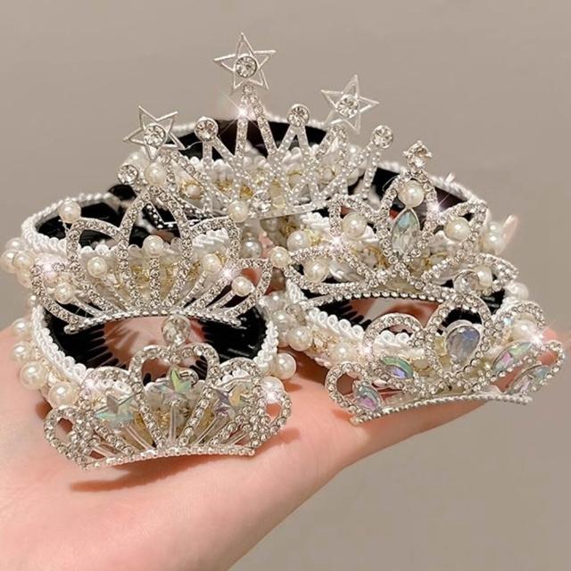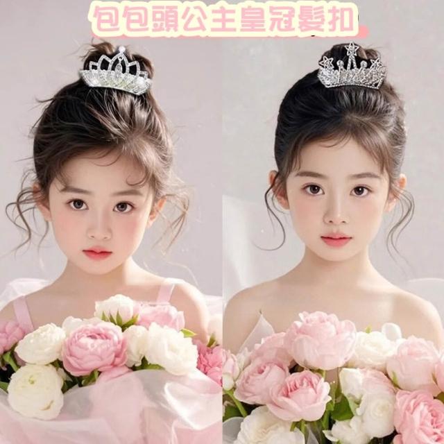 兒童 皇冠 髮飾 丸子頭 鯊魚夾 氣質 盤髮神器 包頭神器 髮夾 髮飾 盤髮器 公主 萬聖節 懶人包(皇冠)