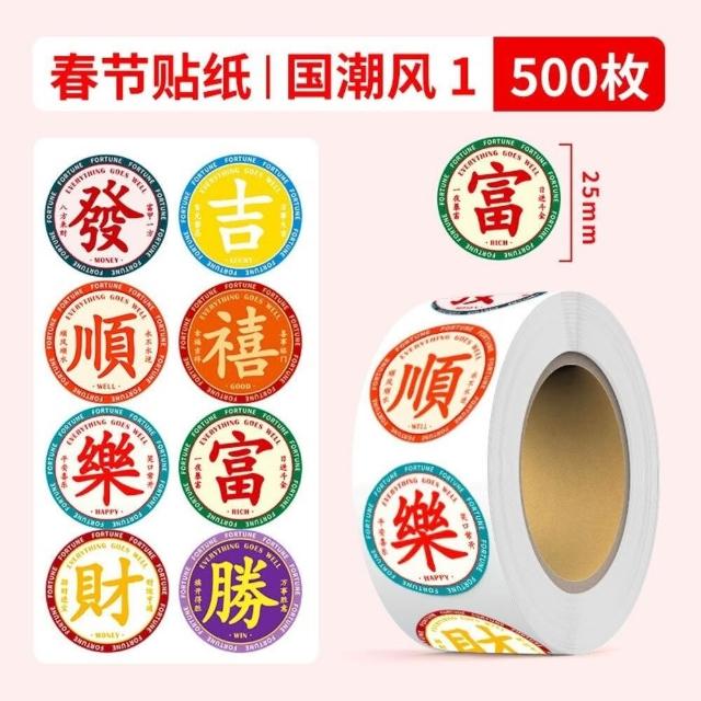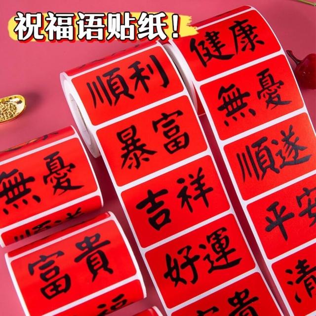 春福旺吉滿財 萬用小春聯貼紙 祝福語貼紙 過年貼紙 烘焙貼紙 萬用貼紙 新年快樂 祝福貼紙 發財貼紙