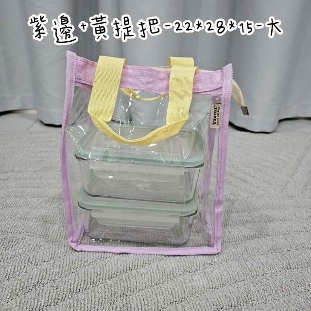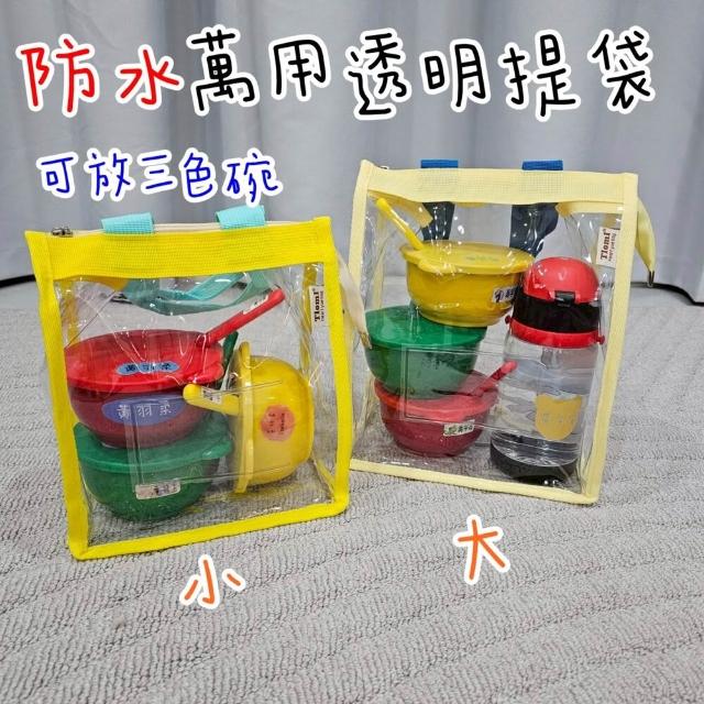 防水 PVC 餐袋 小提包 透明提袋 便當包 提包 幼稚園餐具袋 透明 三色碗袋 野餐袋 收納袋 水