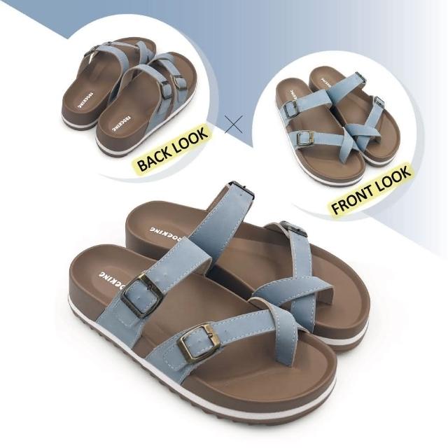 FROGKINGFROGKING 女鞋 繞指羅馬風厚底足弓紓壓拖鞋 F-129(厚底軟Q氣墊羅馬風夾腳拖拖鞋)