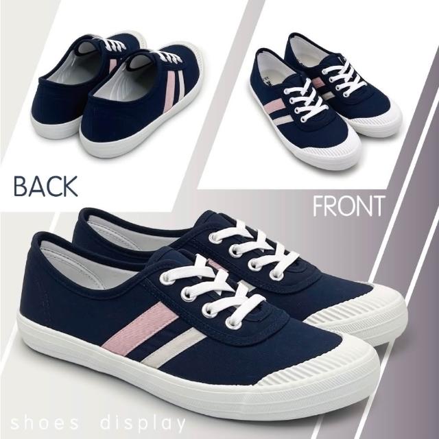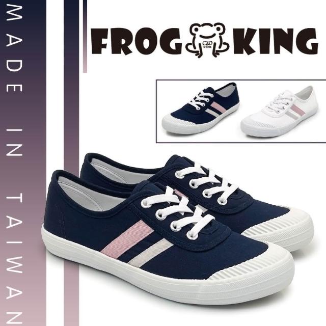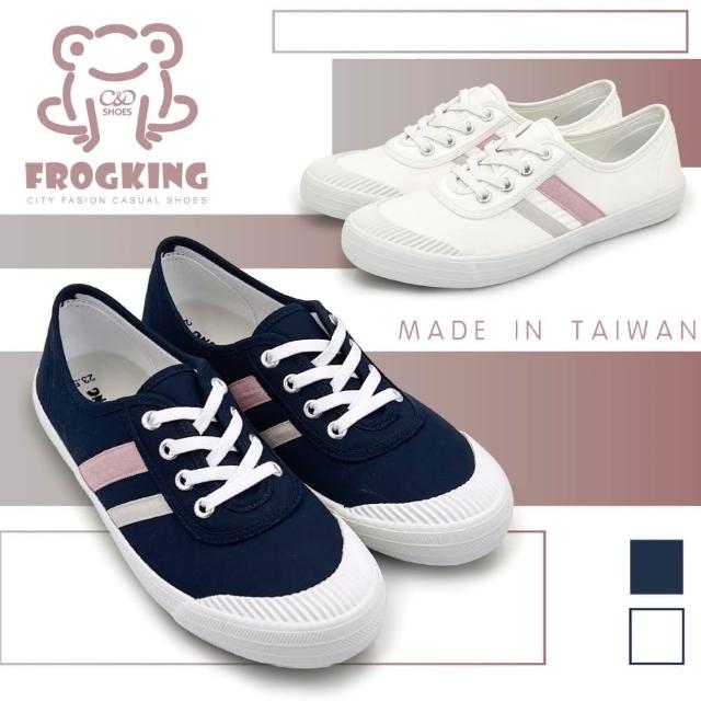 FROGKING MIT 女鞋 撞色雙槓免綁帶休閒鞋 懶人鞋 平底鞋 F-1288(平底鞋日常便鞋免綁帶懶人鞋)