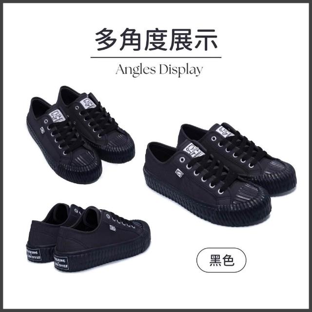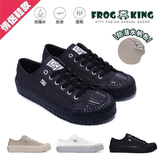 FROGKING 男女款 防潑水厚底舒適帆布餅乾鞋 休閒鞋 帆布鞋 平底鞋 全黑 F-0097