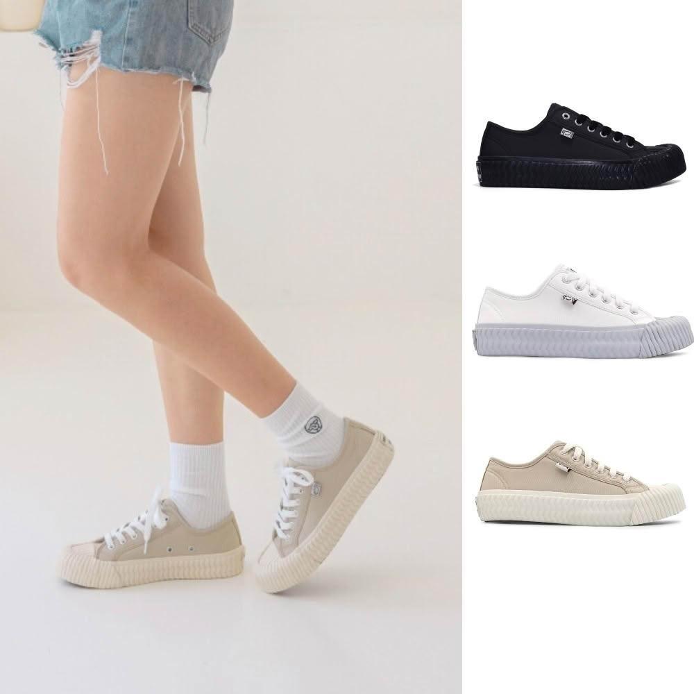 FROGKING 男女款 防潑水厚底舒適帆布餅乾鞋 休閒鞋 帆布鞋 平底鞋 全黑 F-0097
