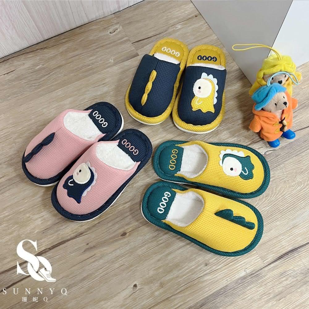 C&D 童鞋 可愛恐龍保暖舒適棉拖 2-051-1(保暖拖鞋 室內拖鞋 童拖鞋 小孩拖鞋 毛毛拖鞋 棉拖)