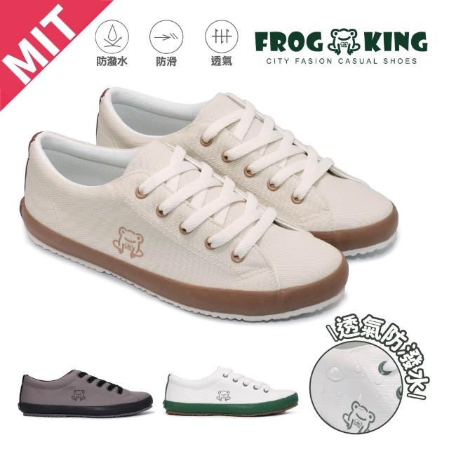 FROGKING 台灣製 女鞋 防潑水泡棉後跟舒適休閒鞋 帆布鞋 平底鞋 F-098