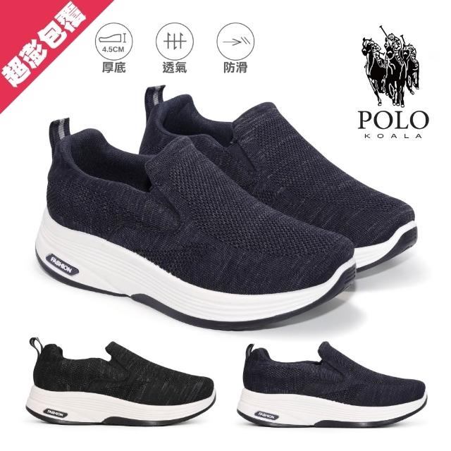 POLOKOALA 男女鞋 超澎包覆 透氣飛織彈性厚底懶人鞋 休閒鞋 搖搖鞋 健走鞋 情侶鞋 黑鞋 黑色 P-3778