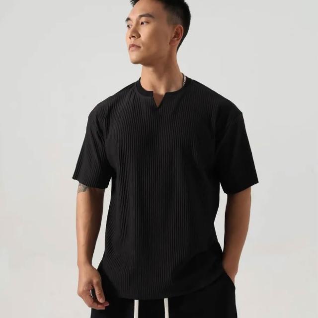 Muscle Shot薄款V領短袖|台灣出貨 夏季 薄款 螺紋 透氣 舒適 籃球 健身 韓系 男裝 T恤 多色
