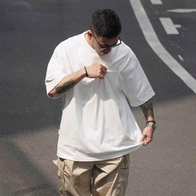 Muscle Shot純棉寬版上衣|台灣出貨 Oversized 男短袖 口袋T 棉T 復古 美式風 男上衣 寬鬆舒適 透氣 吸汗 短袖T恤