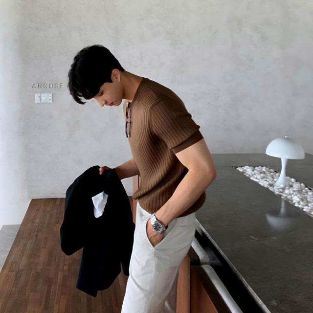 Muscle Shot韓系螺紋短T|夏季個性短袖 男生上衣 韓風穿搭 針織透氣 舒適休閒 短袖T恤 男短T 韓系男裝 百搭輕薄 時尚