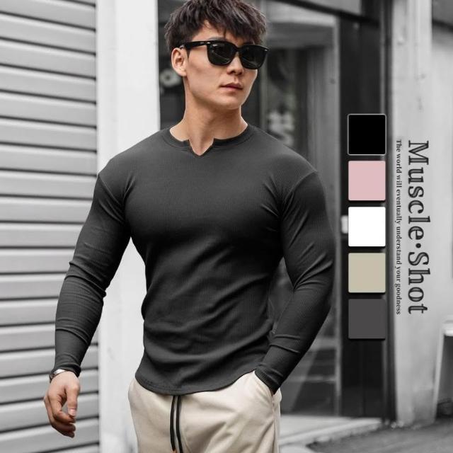 Muscle Shot緊身螺紋顯壯衣|現貨免等 運動長袖 男長袖 上衣 健身服 啞鈴 訓練服 彈性合身 吸濕排汗 透氣 快乾 運動健身服