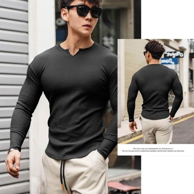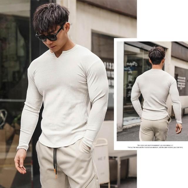Muscle Shot緊身螺紋顯壯衣|現貨免等 運動長袖 男長袖 上衣 健身服 啞鈴 訓練服 彈性合身 吸濕排汗 透氣 快乾 運動健身服