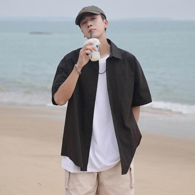 Muscle Shot涼感落肩襯衫|台灣出貨 短袖襯衫 寬鬆落肩 復古風 夏日穿搭 男上衣 休閒襯衫 寬版設計 韓系 男襯衫