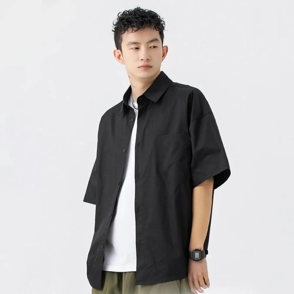 Muscle Shot涼感落肩襯衫|台灣出貨 短袖襯衫 寬鬆落肩 復古風 夏日穿搭 男上衣 休閒襯衫 寬版設計 韓系 男襯衫