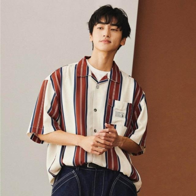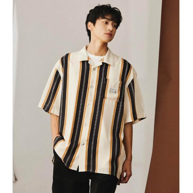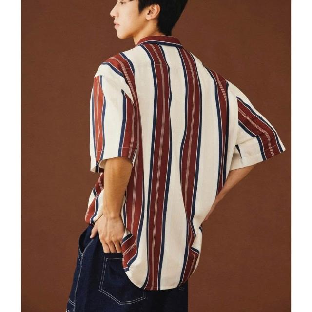 Muscle Shot復古風條紋襯衫|寬鬆落肩 男襯衫 夏季短袖 花襯衫 日系風 韓系薄款 寬版條紋襯衫 男生上衣 襯衫男