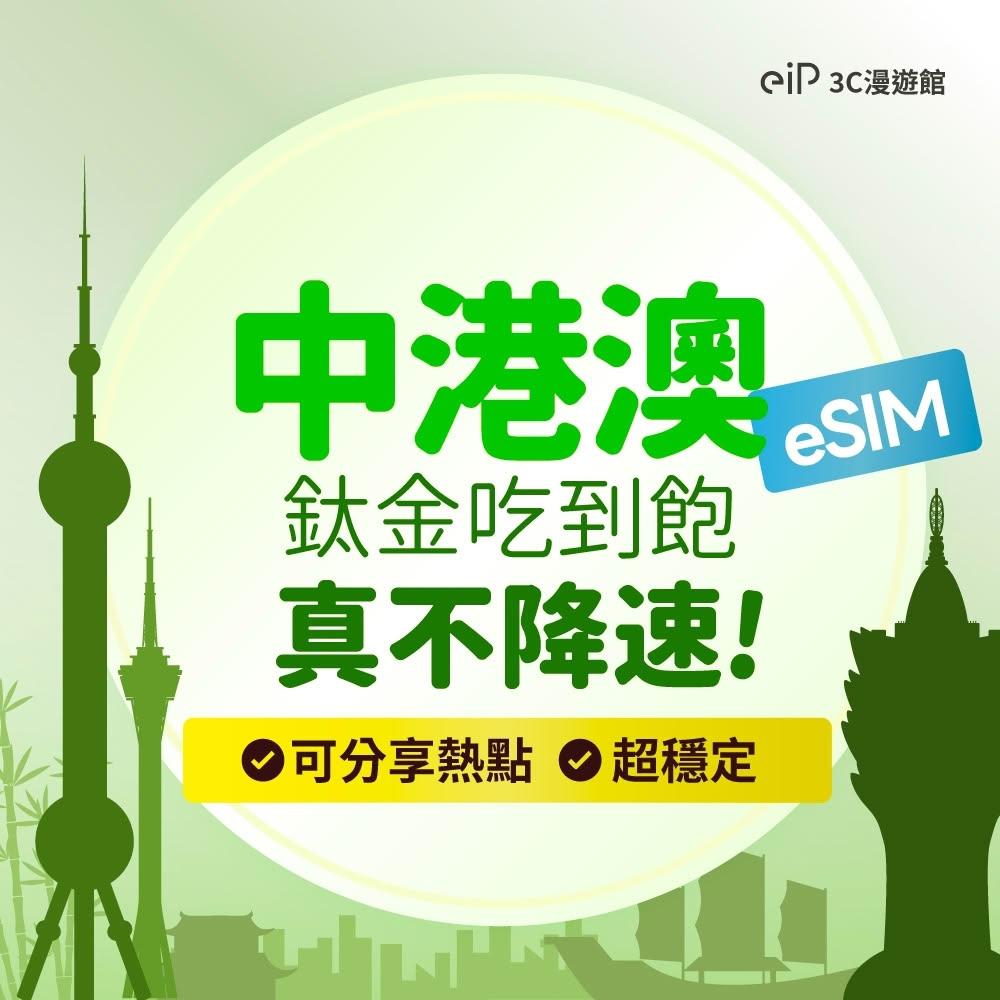 『SIMAX』中港澳 eSIM 鈦金款吃到飽 不降速 3-10天|中國 香港 澳門 通用 4G/5G 吃到飽 鈦金款