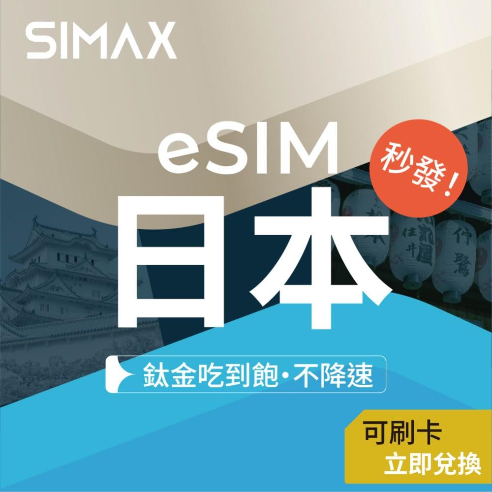 SIMAX 日本 eSIM 鈦金款吃到飽|東京 大阪 福岡 熊本 沖繩 北海道 滑雪 網卡 上網卡