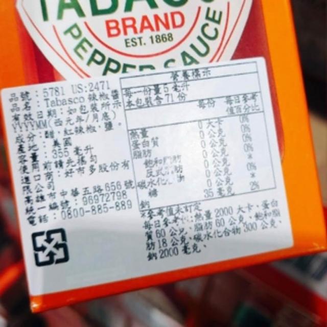 TABASCO辣椒醬 355ml TABASCO 墨西哥辣椒醬 墨西哥 辣椒醬 塔巴斯科辣椒酱 塔巴斯科 好市多 Costco