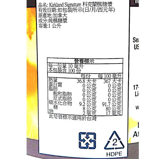Kirkland Signature 科克蘭楓糖漿 1公升(加拿大 楓糖 楓糖漿 maple syrup)