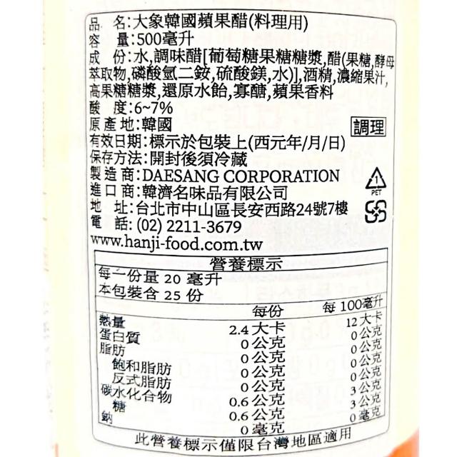 清淨園大象 料理用蘋果醋 500ml (韓式 料理 蘋果醋 韓式料理 蘋果醋 調味醋 料理用 蘋果 料理醋 )