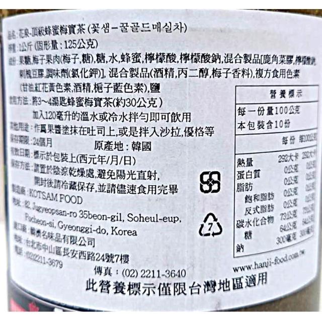 KOTSAM 花泉 頂級蜂蜜梅實茶 1000公克 (蜂蜜梅子茶 梅子茶 梅實茶 韓國 梅子 蜂蜜 果肉)