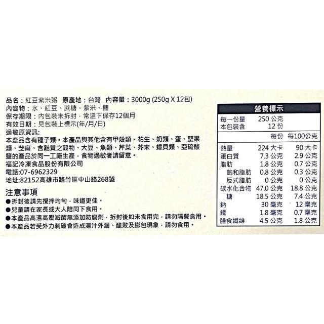 福記 紅豆紫米粥 250公克 12入 (紅豆 紫米 紅豆粥 紫米粥)