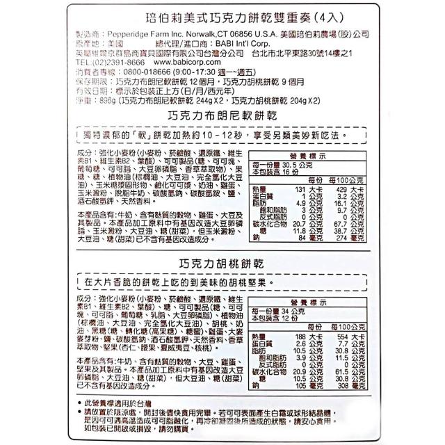 Pepperidge Farm 琣伯莉美式巧克力雙重奏 896公克 (巧克力布朗尼軟餅乾 巧克力胡桃餅乾 巧克力餅乾 軟餅乾 巧克力 布朗尼 胡桃)