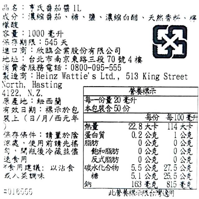 Heinz 亨氏番茄醬 1公升 (TOMATO KETCHUP)