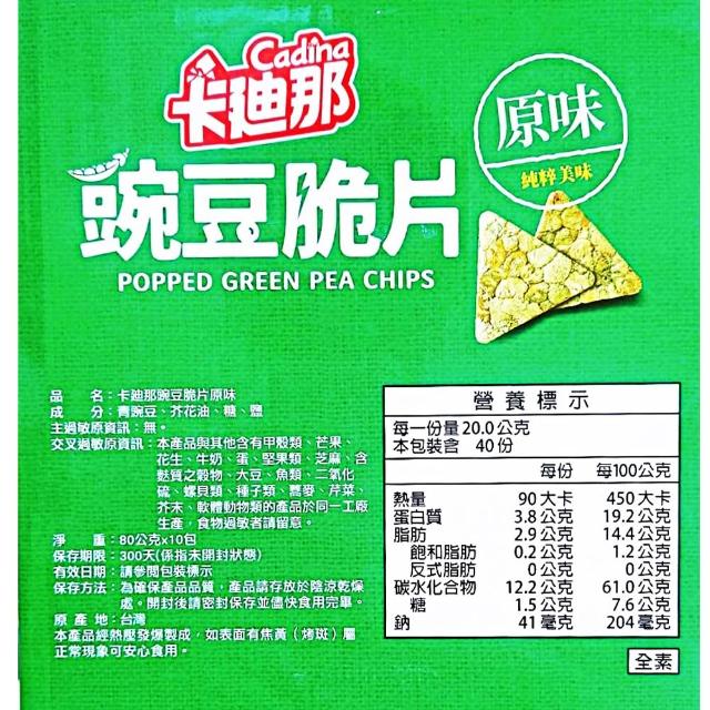 卡迪那豌豆脆片 80公克 10包 (原味 非油炸 無麩質 豌豆 蛋白質 )