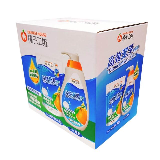 Orange house 橘子工坊高效潔淨洗碗精 650毫升 + 補充包 430毫升4入 (冷壓橘油 低敏 無香精 可分解)