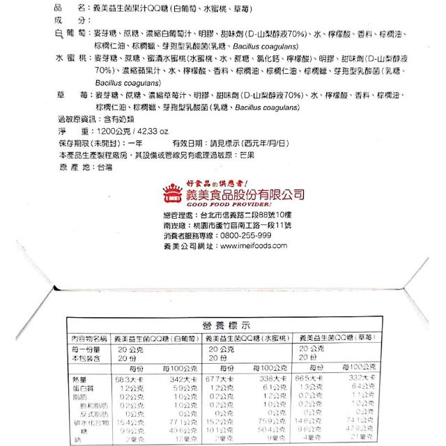 義美益生菌果汁 QQ糖 40公克 30入 (水果 益生菌 果汁 草莓 水蜜桃 白葡萄 軟糖 益生菌軟糖)