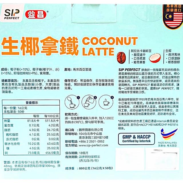 益昌生椰拿鐵 16公克 50入 (阿拉比卡 椰子粉 即溶咖啡 即溶拿鐵 生椰 拿鐵 沖泡 咖啡)