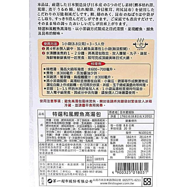Kingmori 日本特選和風鰹魚高湯包 8.8公克 20入 (鰹魚 高湯 湯包 利尻昆布 昆布 椎茸)