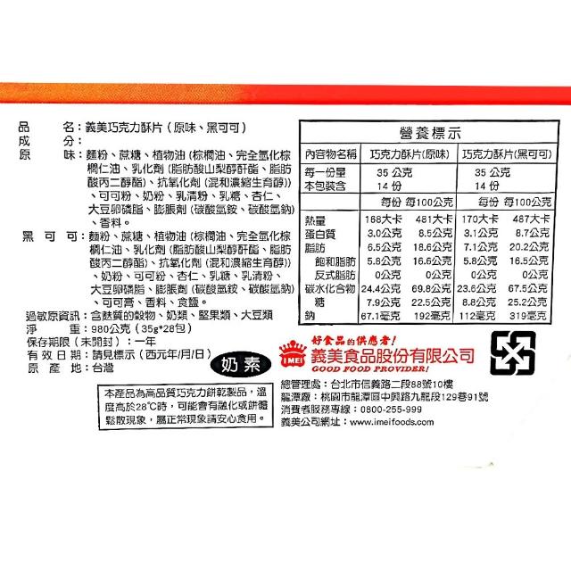 義美巧克力酥片 35公克 28入 ( 經典 香濃 黑可可 杏仁片 杏仁 酥脆 巧克力餅乾)