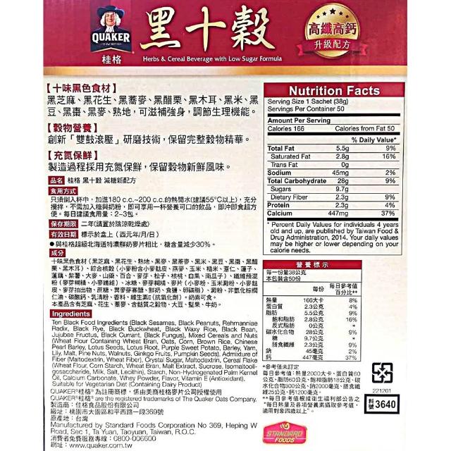 QUAKER 桂格減糖黑十穀 38公克 50入 (減糖 黑芝麻 黑花生 黑蕎麥 黑醋栗 黑木耳 黑米 黑豆 黑棗 高纖 高鈣)