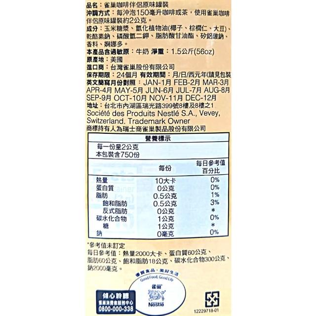 Nestle 雀巢咖啡伴侶 原味罐裝 1.5公斤 ( 美國原裝 Coffee Mate )