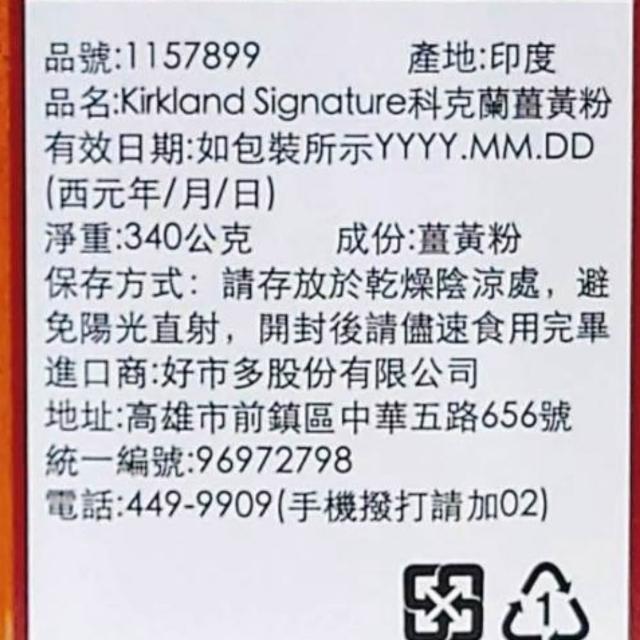 Kirkland Signature 科克蘭薑黃粉 340公克 (100% 薑黃 Turmeric 印度料理 咖哩 香料 香料粉 印度)